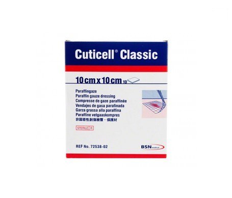 Apósito de algodón tejido, parafinado, estéril y antiadherente.