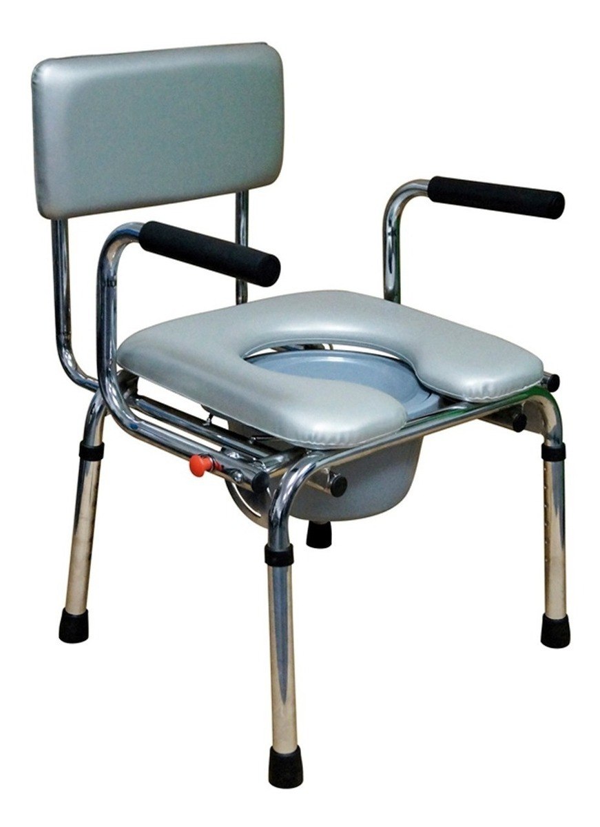 Fabricada en acero cromado. Estructura fija. Descansabrazos abatible. Asiento «Clip-on» y respaldo acojinado. Soporta 100kg.